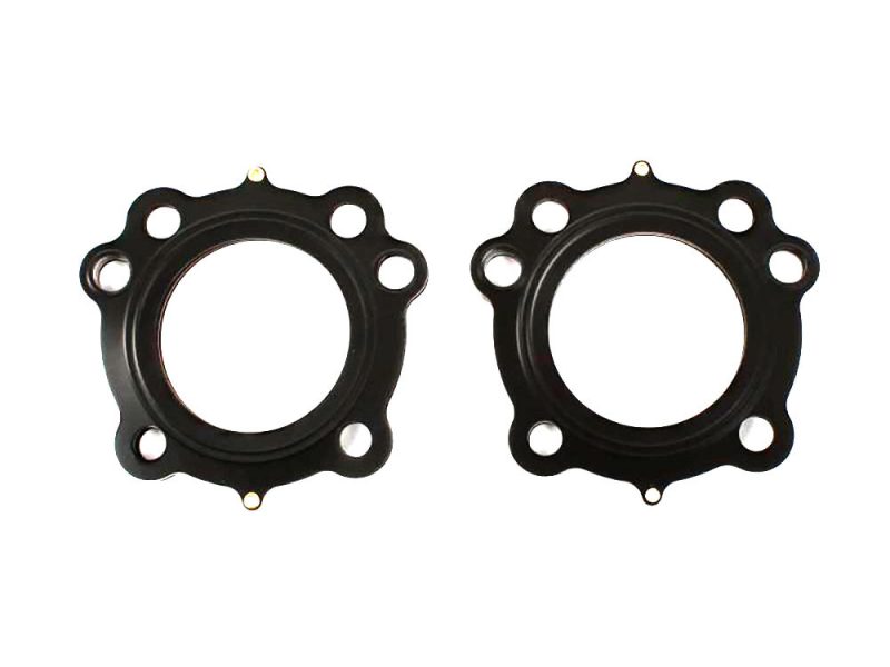 Harley-Davidson Evolution Sportster 3.000″ MLS Head Gaskets. Comprised of multiple embossed layers of stainless steel with the outer layers utilizing a viton rubber coating. Compressed operating thickness is .051″.
