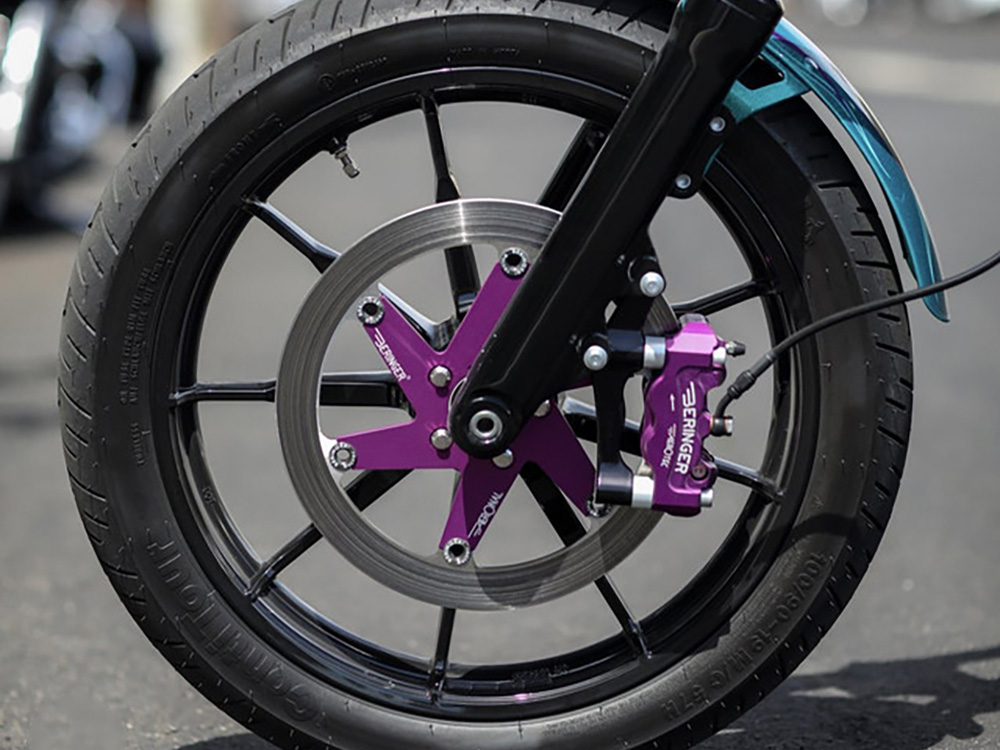 * Use aftermarket 108mm radial brake calipers on 2000 and up stock Harley forks