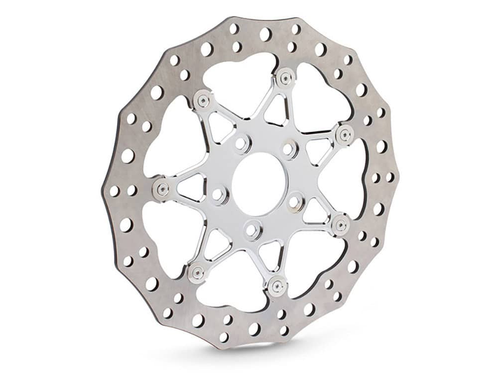11.8in. Front ProCross Disc Rotor – Chrome. Fits Dyna 2006-2017, Softail 2015up, Sportster 2014-2021 & Some Touring 2008up.