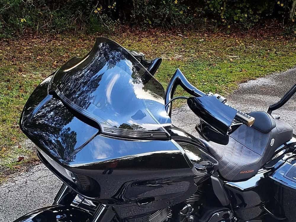 The Sport Flare™ for 2015-2023 Road Glides is more streamlined and offers radical curves and a sportier stance. It compliments the lines of the new fairing with a more aggressive profile, and aids stability and handling with improved air management. Still awesome for the long haul, definitely kool for showing off your ride!