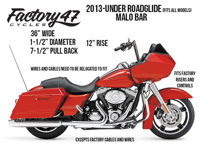 * Fits most Softail, Dyna, Road King, and Sportster models with a standard 1″ Clamp Riser & 5″ Wide Top Clamp with Offset Mounting Bolts