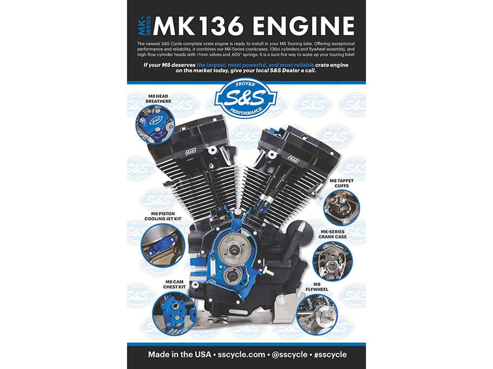 This is the newest version of the complete crate engines S&S is known for, ready to install in your M8 Softail. We took our MKB-Series Crankcases, married them to the 136″ cylinders and flywheels, and then fit High-flow cylinder heads with +1mm Valves and .605″ springs. This is everything you need to have the largest, most powerful, and most reliable crate engine on the market t oday.
