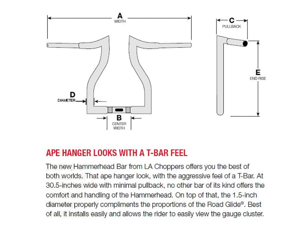 16in. x 1-1/2in. Hammerhead Handlebar – Chrome. Fits Road Glide 2015-2023 & Road King Special 2017up