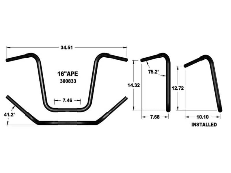* Diamond knurls for risers on 3.50″ c enters, elliptical center slot and slotted grips with the right side flattened for master cylinder clearance.