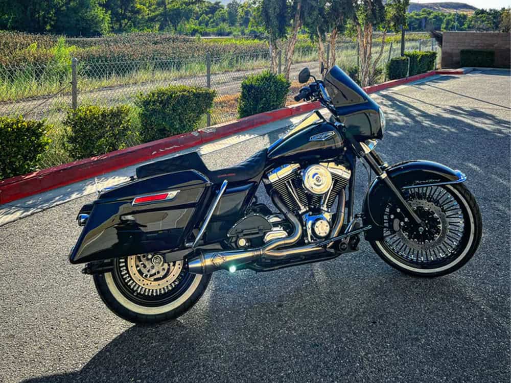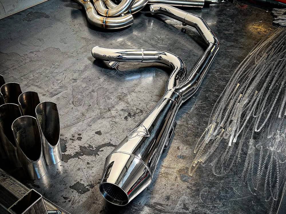 * 4″ rolled cone muffler with a 2 ¼ coiled perforated baffle for increased torque and a deep tone