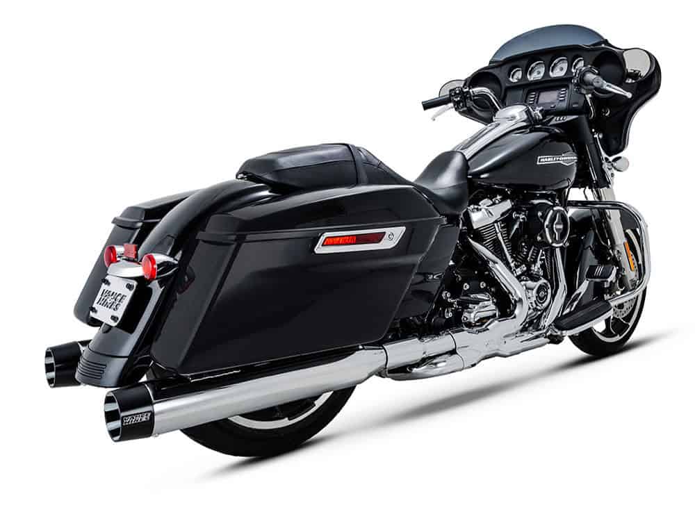 Witness the intersection of engineering precision and unparalleled style – the Blackbird 450 Slip-ons will elevate your Milwaukee-Eight Bagger to new heights of exhilaration and satisfaction. Inspired by the sleek sophistication of jet engine exhausts, the Blackbird 450s feature 4.5″ tapering billet end caps with internally machined channels and CNC milled logo on their outboard sides.