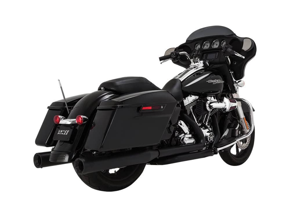 Featuring large 4-inch mufflers finished with race-inspired CNC machined billet end caps, Eliminator 400s are tuned to give Harley-Davidson baggers a deep and aggressive roar.