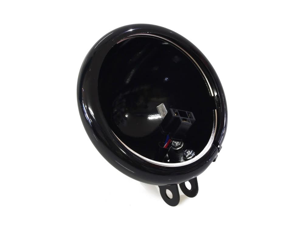 Gloss black 5.75″ bottom mount headlamp shell includes alignment ring, bezel & mounting hardware. Delphi to H4 wire adapter included for plug and play installation on 2018up Softail Low Rider (FXLR), Low Rider S (FXLRS), Street Bob (FXBB) and Standard (FXST).