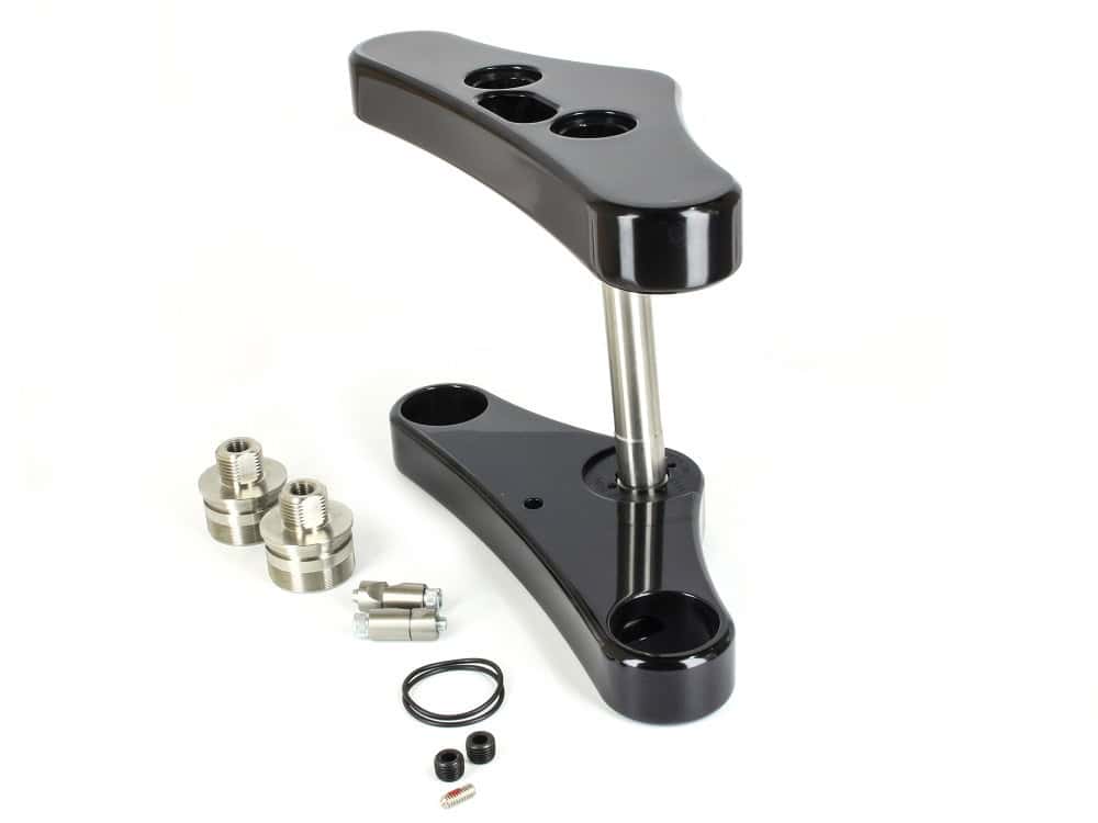 Alteration of steering components ie raked triple trees, extended forks etc. may adversly effect the handling & steering geometry of the motorcycle. Responsibility rests with the customer to select the correct rake & fork length for the particular application. RSS advises consultation with a Professional skilled in rake & trail calculation.