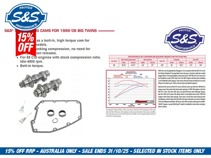 * HOWEVER Rollies does recommend 1999 model Twin Cam Touring & Dyna’s with tapered cam shaft gear to upgrade S&S Gear Drive Cams (i.e. SS330-0017)
