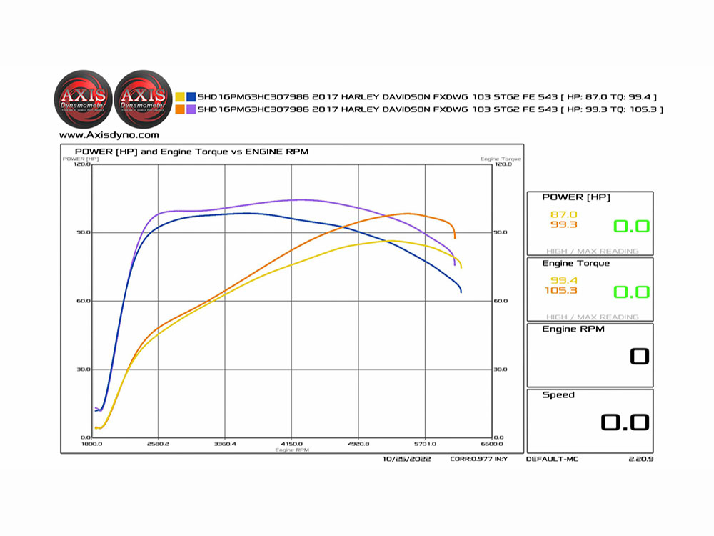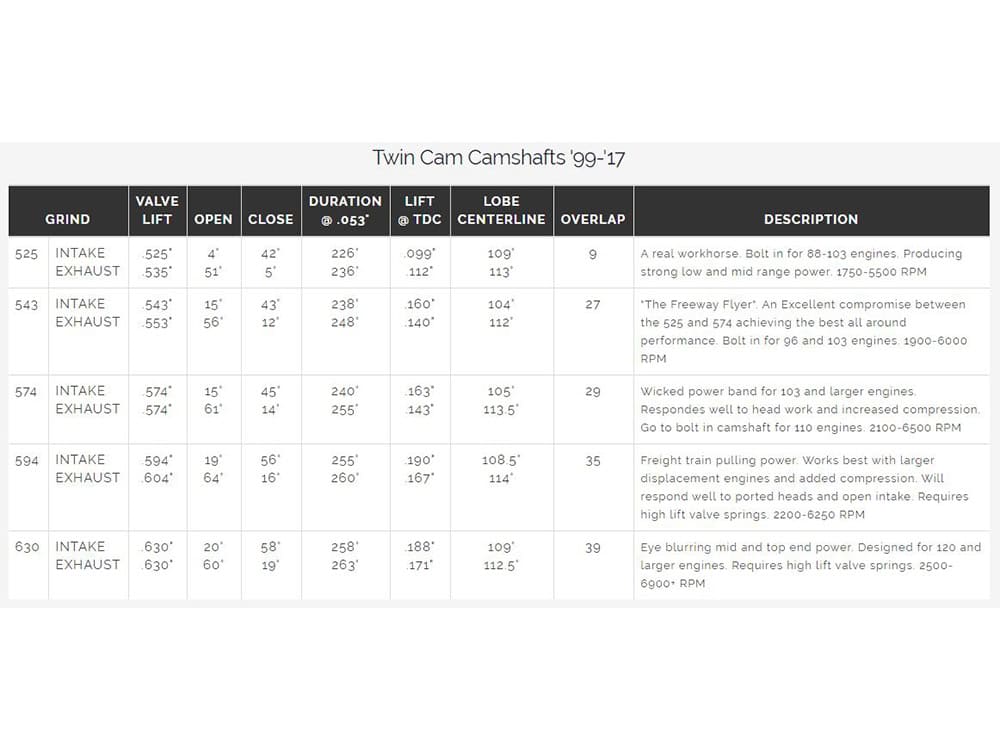 543 CAMS – The Freeway Flyer, a great camshaft for those who want more top end power than our 525 cam. Extremely smooth cam lobe layout maintains quiet valve-train and produces the smoothest cruise power band available. Excellent bolt in camshaft for stock to mild 103 engines. This cam is easy starting, increases throttle response and fuel mileage. Responds well to increased compression ratio, performance exhaust and a high flow air cleaner. RPM 3,000 – 6,000