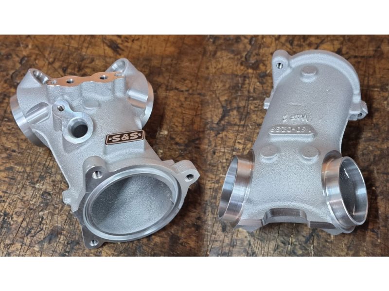 Big bore engines are all about the flow, more air in and more air out, anything that slows that down, robs horsepower. The factory M8 intake manifold does a decent job in stock form, but starts getting in the way when trapped between 124ci and larger cylinders. The stock polymer unit is also less tolerant of the additional heat that a big bore engine can make at full noise. The solution is the new S&S high flow cast aluminum manifold and a must have for top level performance in the M8 platform.< /P>