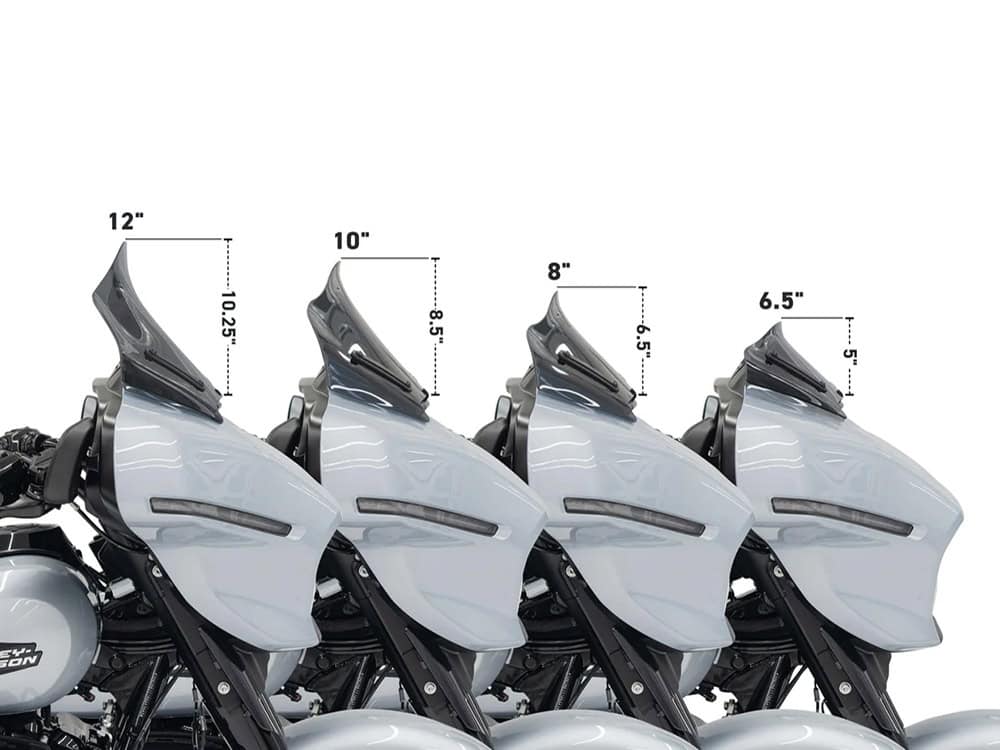 Our Flare™ Windshields re-route the air flow with its patented design, featuring distinctive “hips” at the outer edges. These “hips” create downforce on the front of the bike, significantly enhancing stability compared to riding with a stock windshield. The unique “flip” at the top of the Flare™ directs air upward and backward, providing a cleaner, less turbulent airflow for both the rider and passenger.