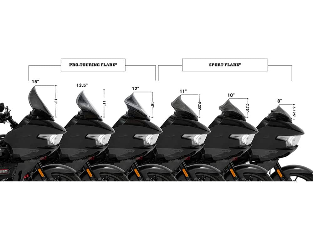 * In most cases, Klock Werks recommends you choose a Flare™ Windshield size that you can look over comfortably while sitting on your motorcycle in your true riding position.