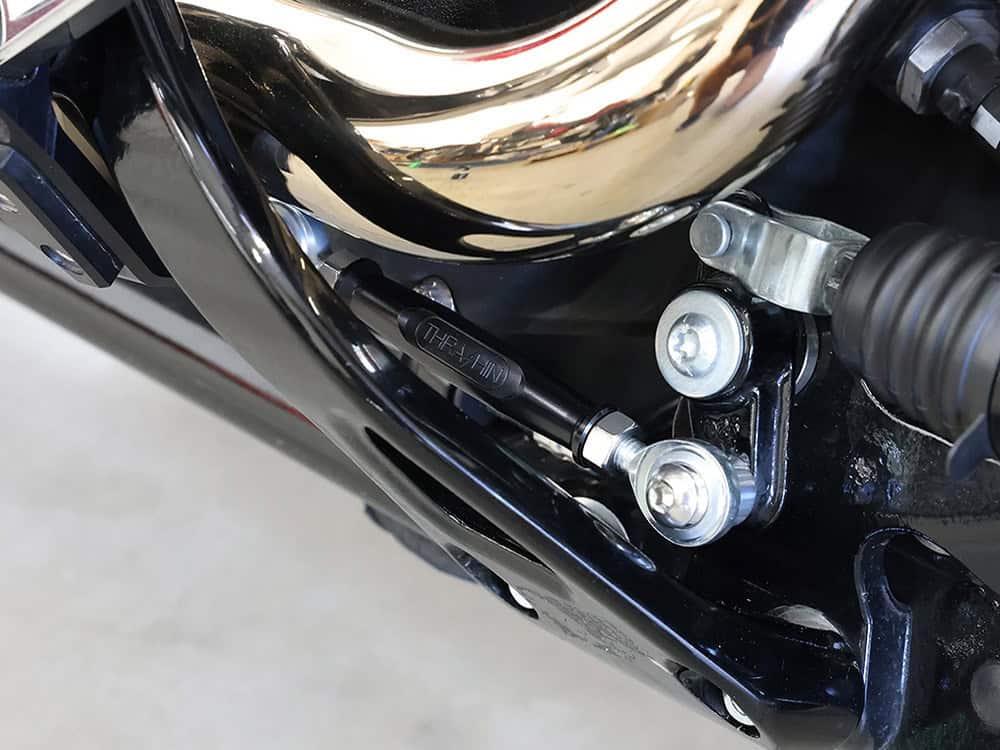 Our all-new Softail brake linkage stands out from the competition by using opposing thread Heim joints, this allows you to fine tune the height of your brake arm without having to remove the linkage from your bike.