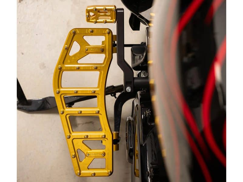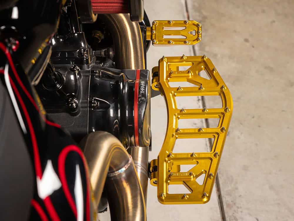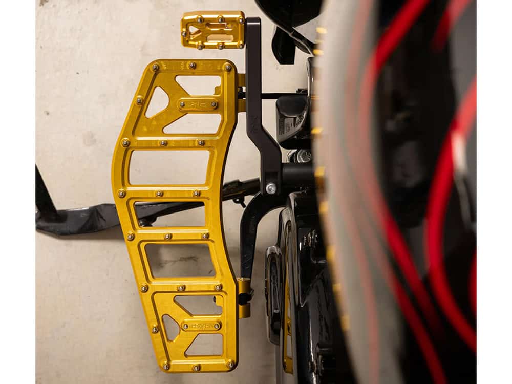 Aggressor Rider Floorboards – Gold. Fits Touring 1980up, FL Softail 1986-2017 & Dyna Switchback 2012-2016