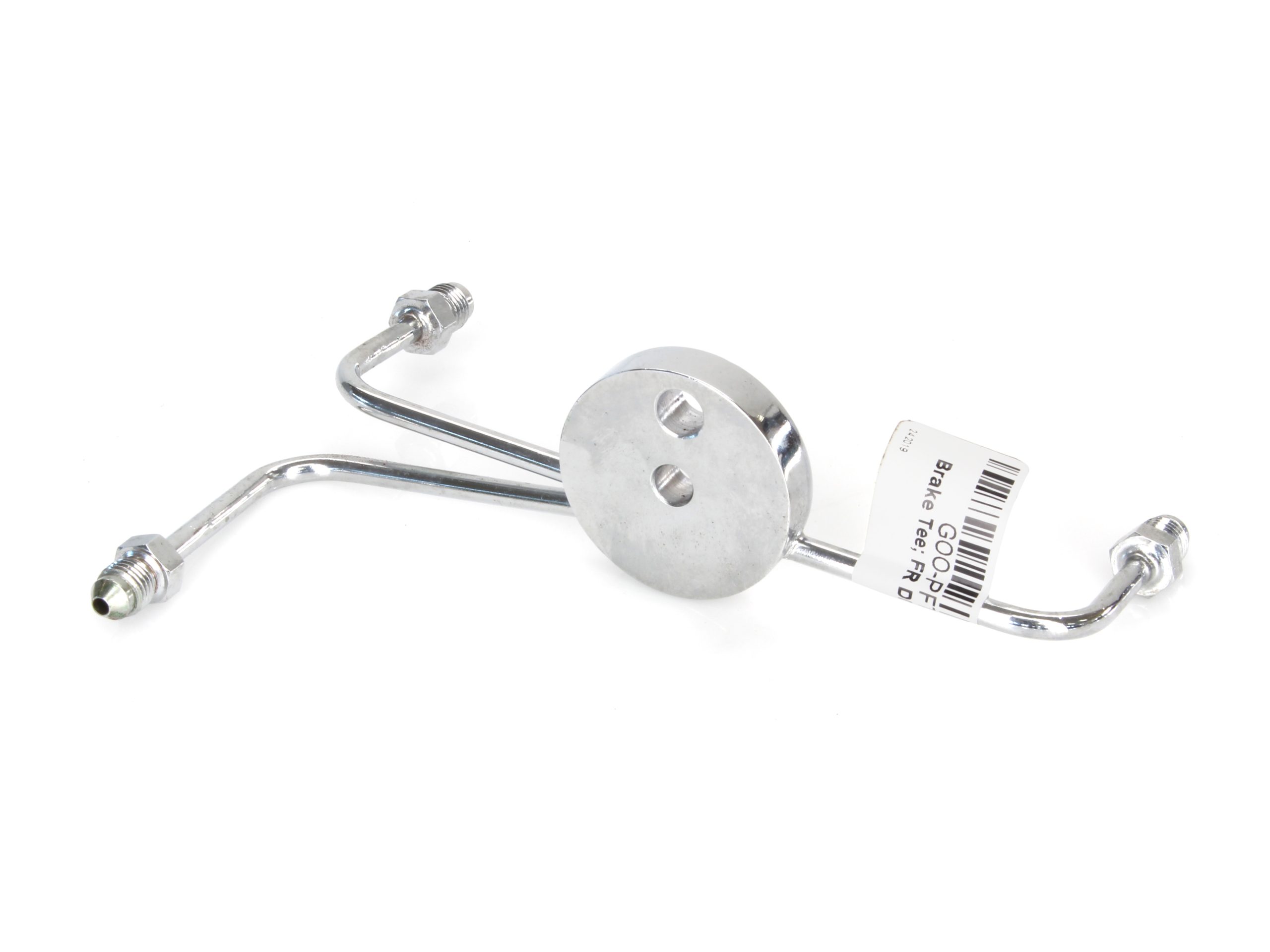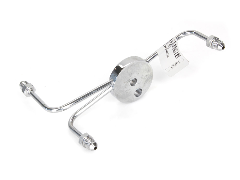 AN3 Front Dual Disc Brake Tee - Chrome. Fits Wide Glide Front Ends with Dual Disc Rotors.