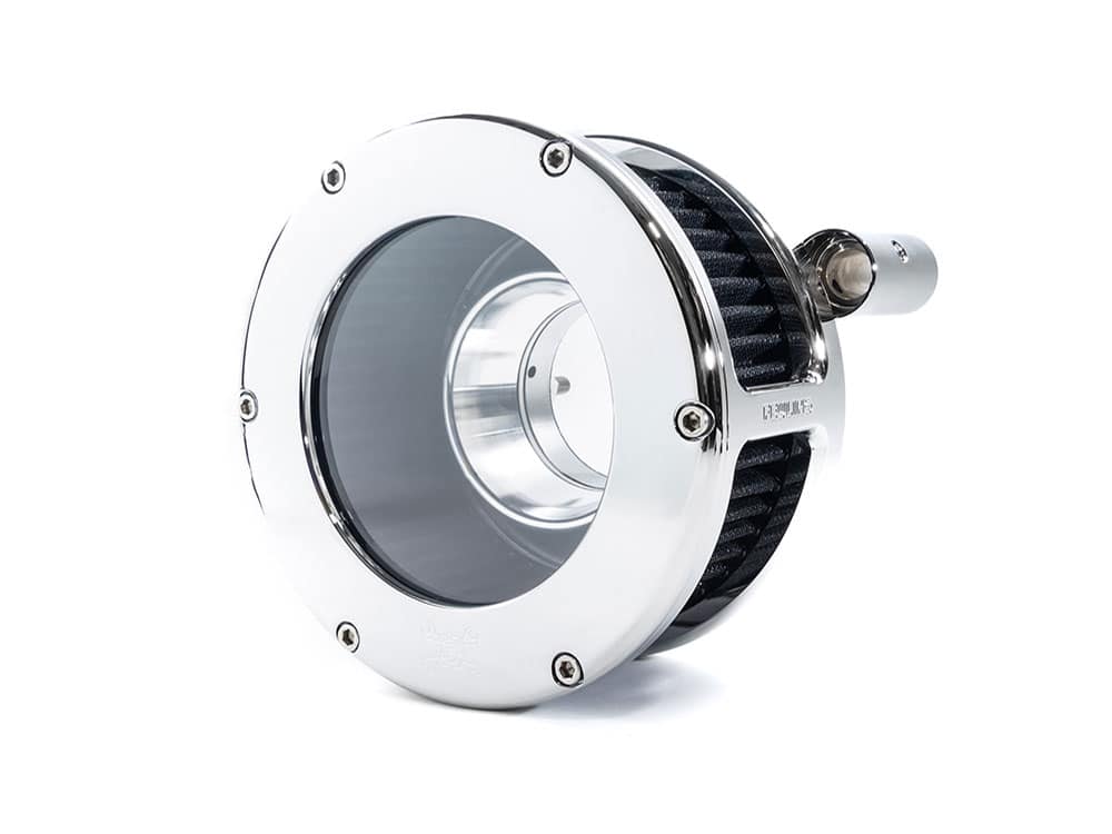 With years of experience designing improved intake ports and intake manifolds, brings light to a new bolt-on air cleaner design for Harley-Davidson motorcycles. The Feuling BA air cleaner lengthens the intake and delivers increased velocity and volume into the intake track.