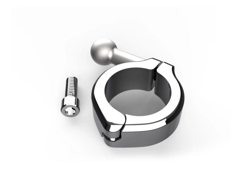 Clean, single bolt attachment clamp made of heat treated aluminum. Compatible with Ciro accessories, including phone holders, drink holders and camera mounts.