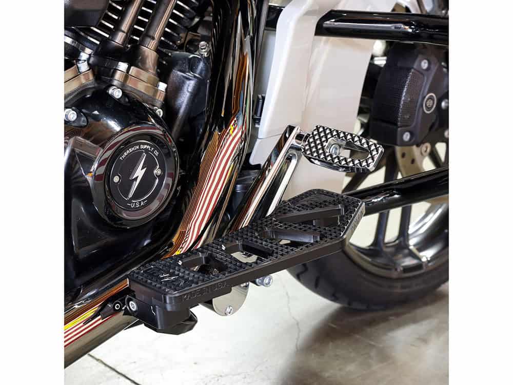Black Apex Bagger Rider Floorboards. Fits Touring 1980up, FL Softail 1986-2017 & Dyna Switchback 2012-2016