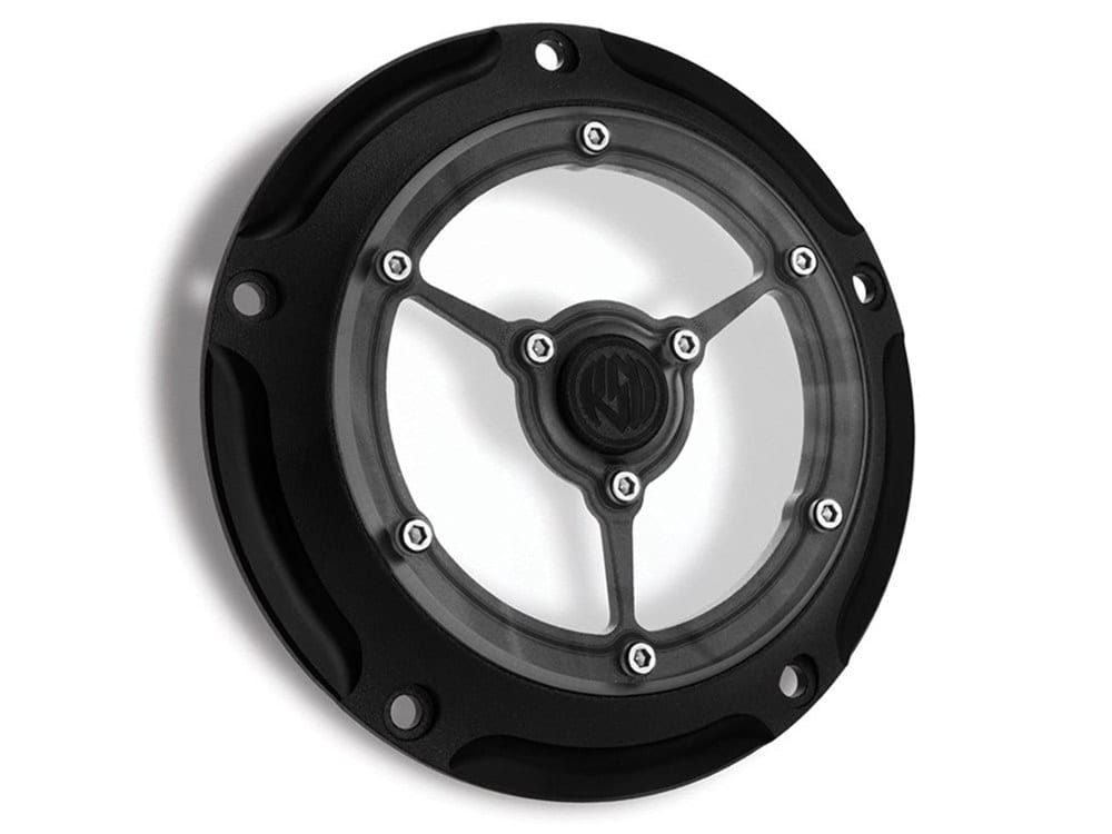 Clarity Derby Cover – Black Ops. Fits Softail 1999-2018, Dyna 1999-2017 & Touring 1999-2015.