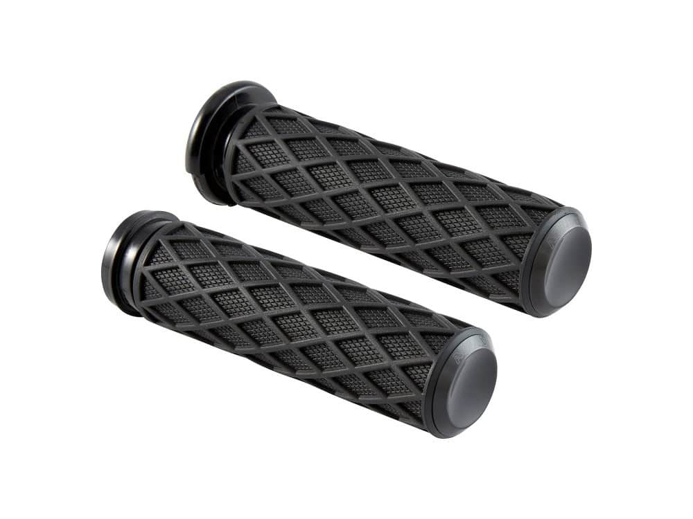 * Diamond design rubber grips with integrated knurling inside each diamond shaped pocket for a vintage look with excellent hand traction