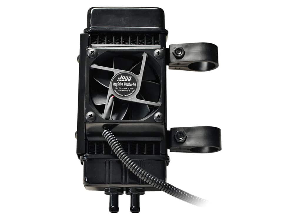 * Jagg WeatherTek fan turns on automatically at circa 210ºF and pulls a full 75cfm across cooler