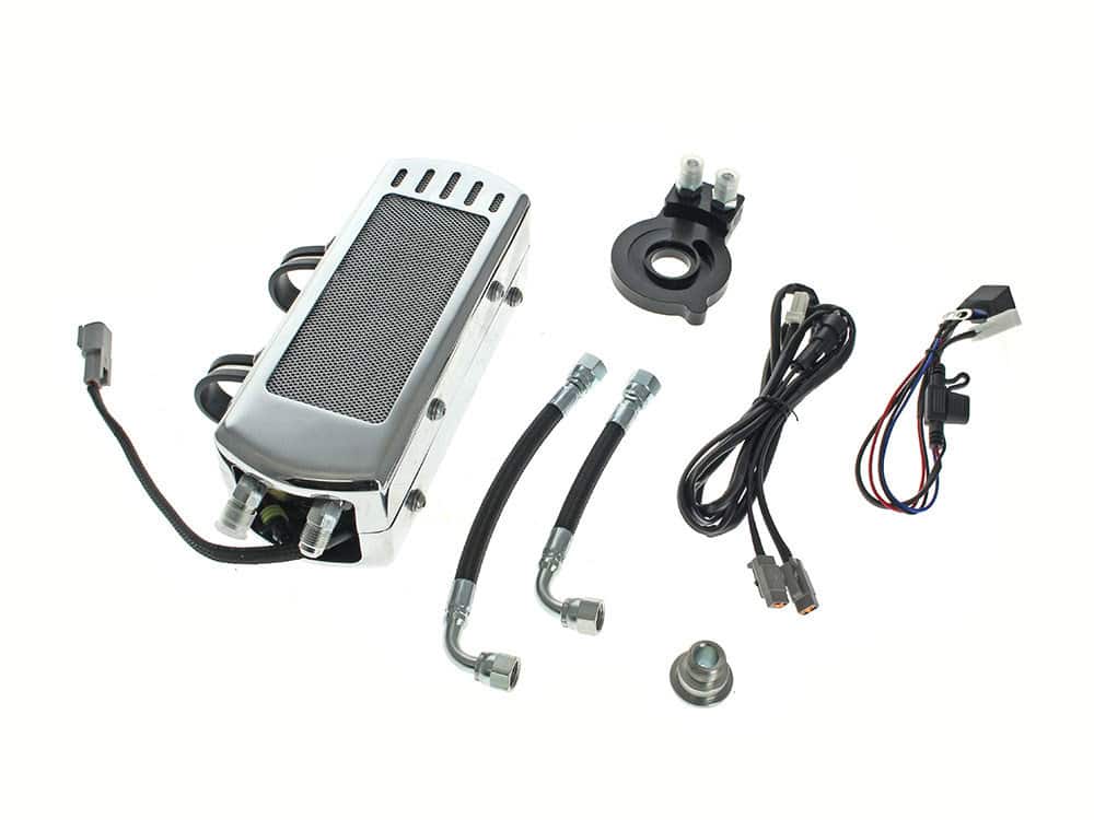 * 3.0 oil adapter and thermal switch with waterproof connectors automatically turns on the powerful dual fans when your oil reaches 99 degrees celsius and they stay on until the oil is cooled to 85 degrees celsius