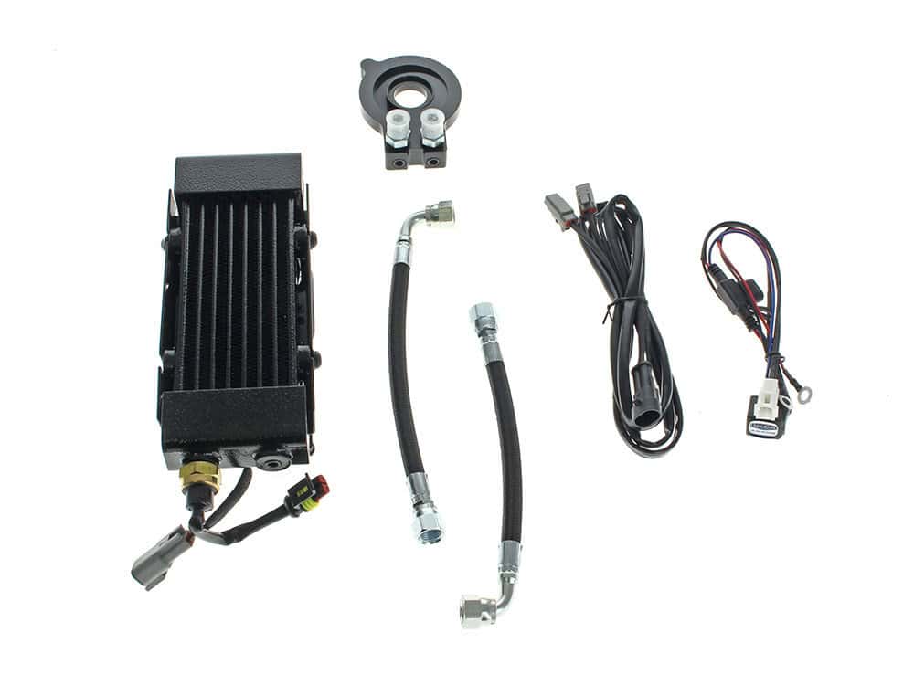 * 3.0 oil adapter and thermal switch with waterproof connectors automatically turns on the powerful dual fans when your oil reaches 99 degrees celsius and they stay on until the oil is cooled to 85 degrees celsius