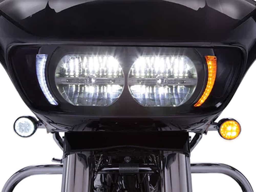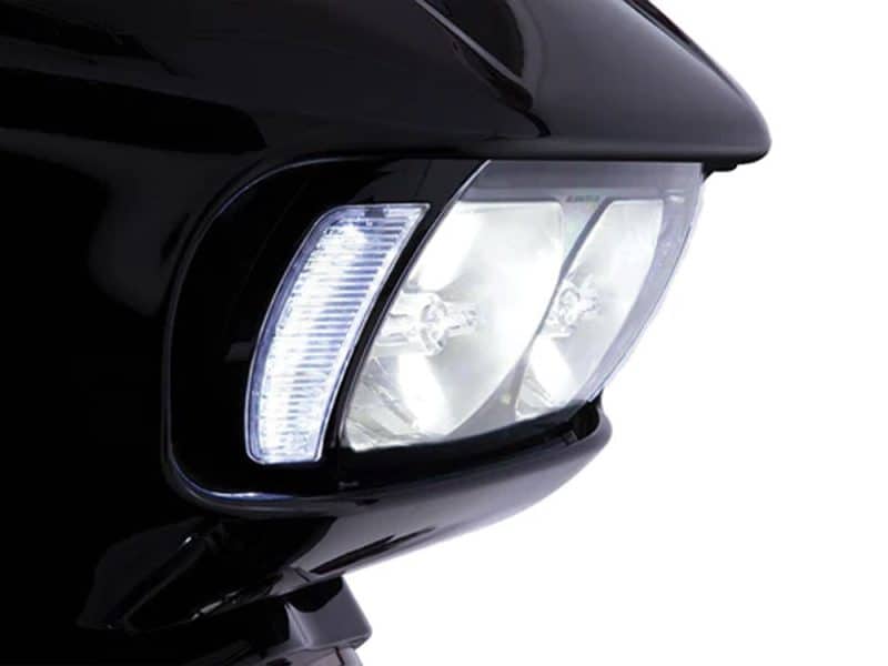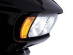 The Ciro Fang Headlight Bezels replace the dull black plastic on both sides of your headlight with bright white LED running lights and amber turn signals set in a very clean housing.