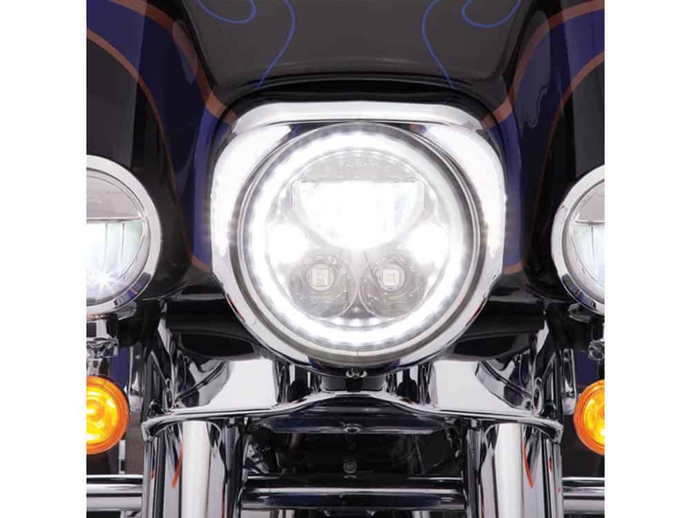Fang LED Headlight Bezel with White Running Lights – Chrome. Fits Touring 2014-2023