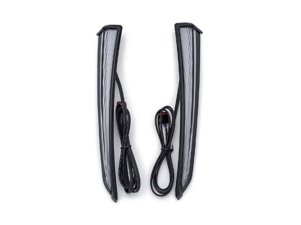 The Fang Lower Fairing Lights create a wide spread of light, making them great for dark parking lots and low speed maneuvering. Featuring amber turn signals, these lights increase visibility day or night.