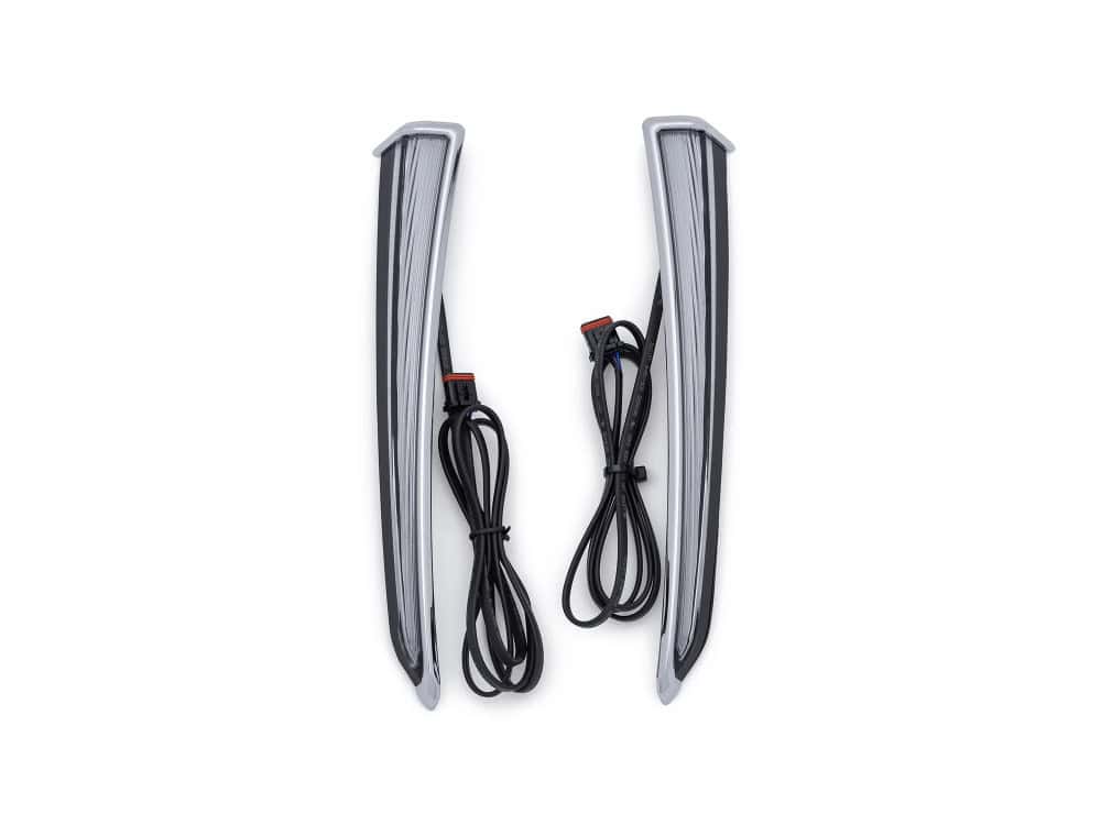 The Fang Lower Fairing Lights create a wide spread of light, making them great for dark parking lots and low speed maneuvering. Featuring amber turn signals, these lights increase visibility day or night.