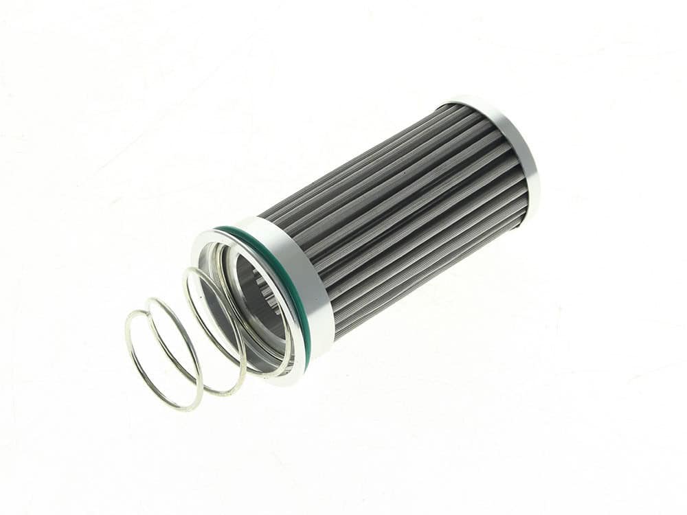 * Billet aluminum filter case with machined fins, doubles as an oil cooler