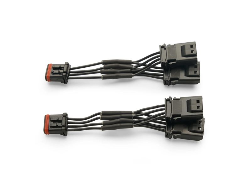 Going to add two, three, four or even more lighting kits to the front of your Harley-Davidson? These Y-connectors can be used when installing multiple Ciro® front end lighting kits with amber turn signals. This part will decrease the amount of wiring harnesses inside the inner fairing and make for a cleaner and easier installation.
