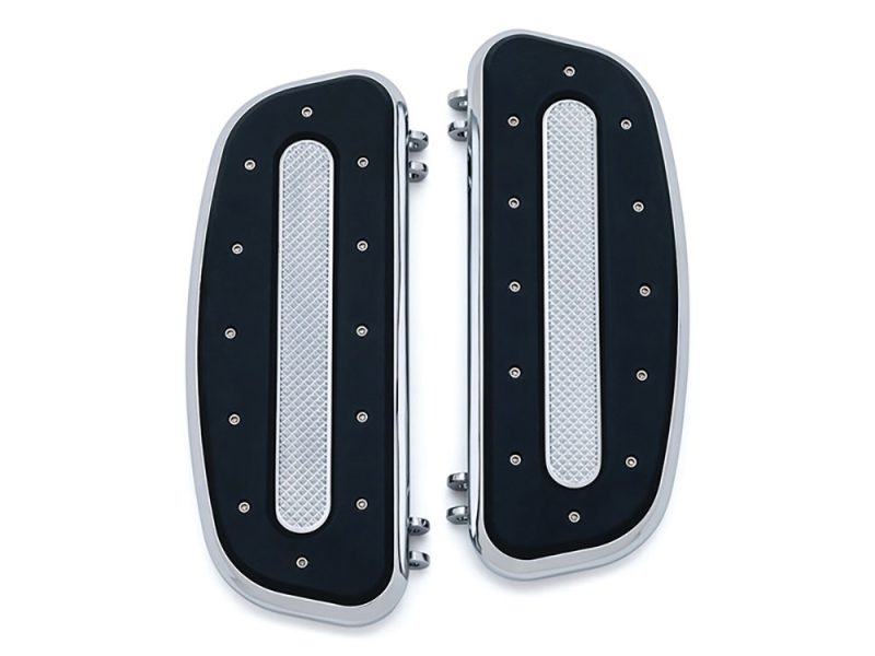 * The aluminum boards feature an industrial-themed design with a knurled center surface incorporated into the top of the housing & vibration-dampening soft rubber inserts for comfort and traction. * Installation is a bre eze reusing the existing hardware.
