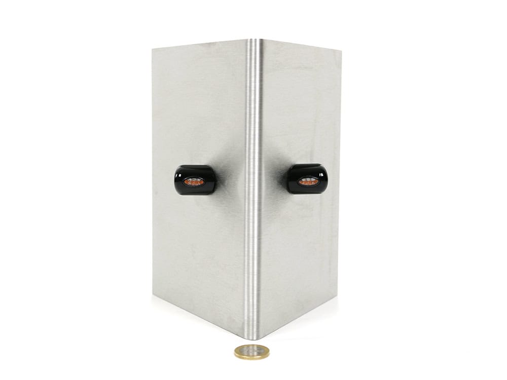 Bright orange motorcycle rear tail light and LED indicators for Revelry Motorcycles.