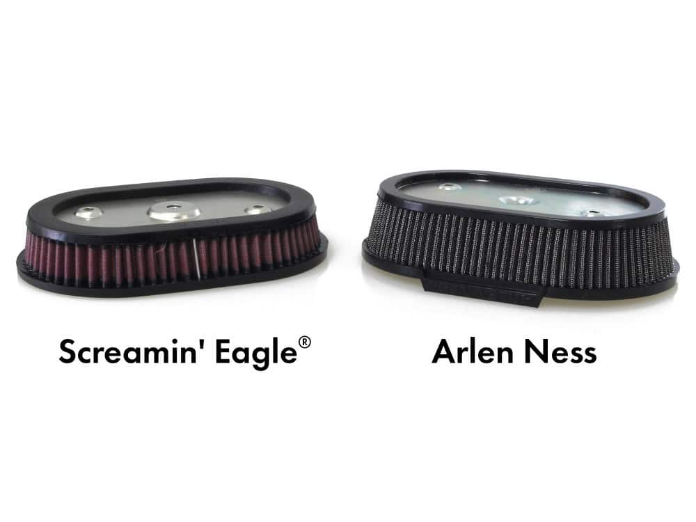 * Dyno testing has shown up to a 3hp increase after installing the upgrade filter on factory displacement M8 engines; up to 5hp gain for 124″ big bore M8 engines