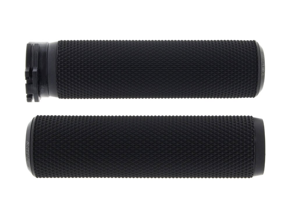* Knurled grips feature a knurled rubber grip area for great hand traction and a billet end cap for a clean custom look