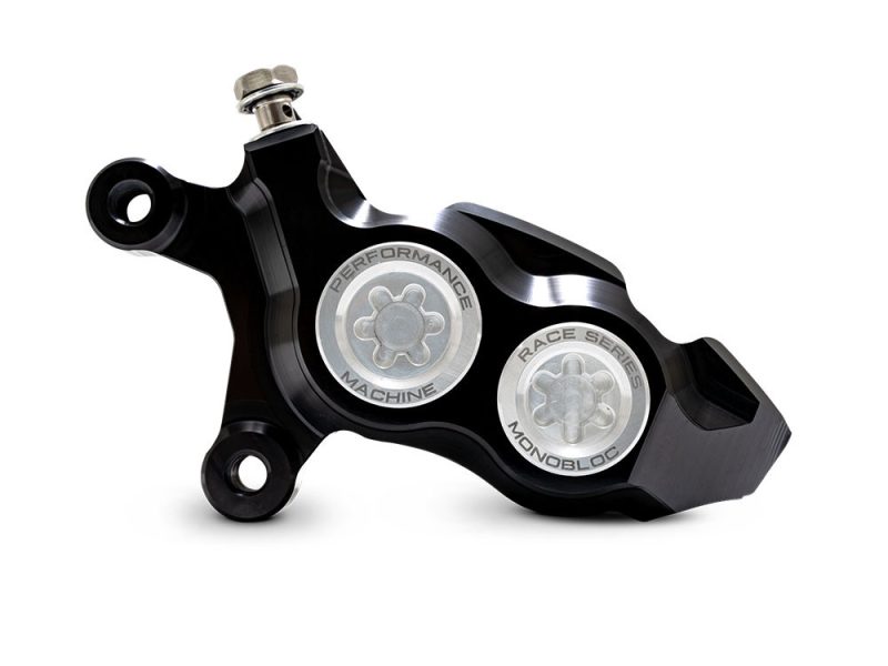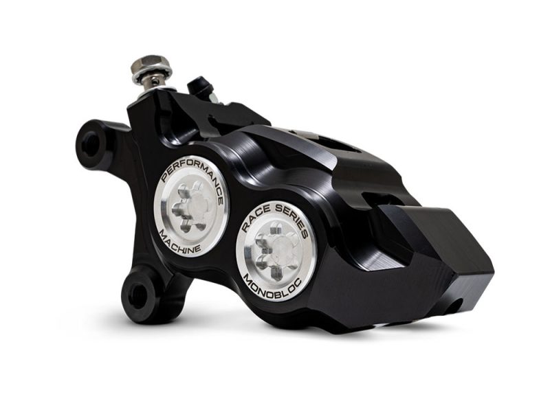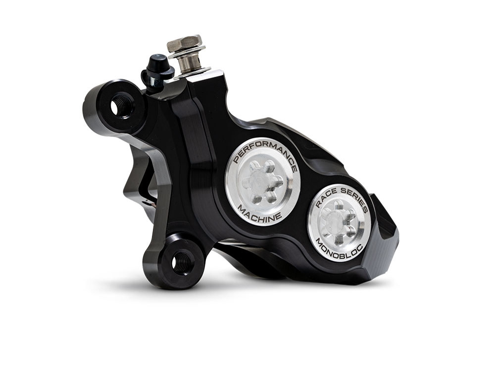 Born from a single piece of solid billet aluminum, the Race Series Monobloc Caliper cuts no corners in providing the very best stopping power for H-D motorcycles. Four large diameter pistons combine d with the extra rigidity of a differential bore monobloc design provide a staggering 20% increase in stopping power over OEM units.