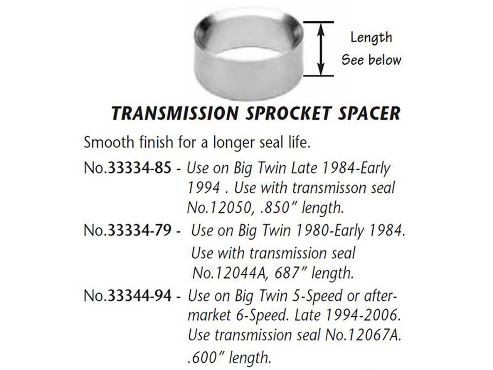 Transmission Seal Spacer. Fits 5Spd Big Twin 1979-1984 with Coarse Splined Sprocket.