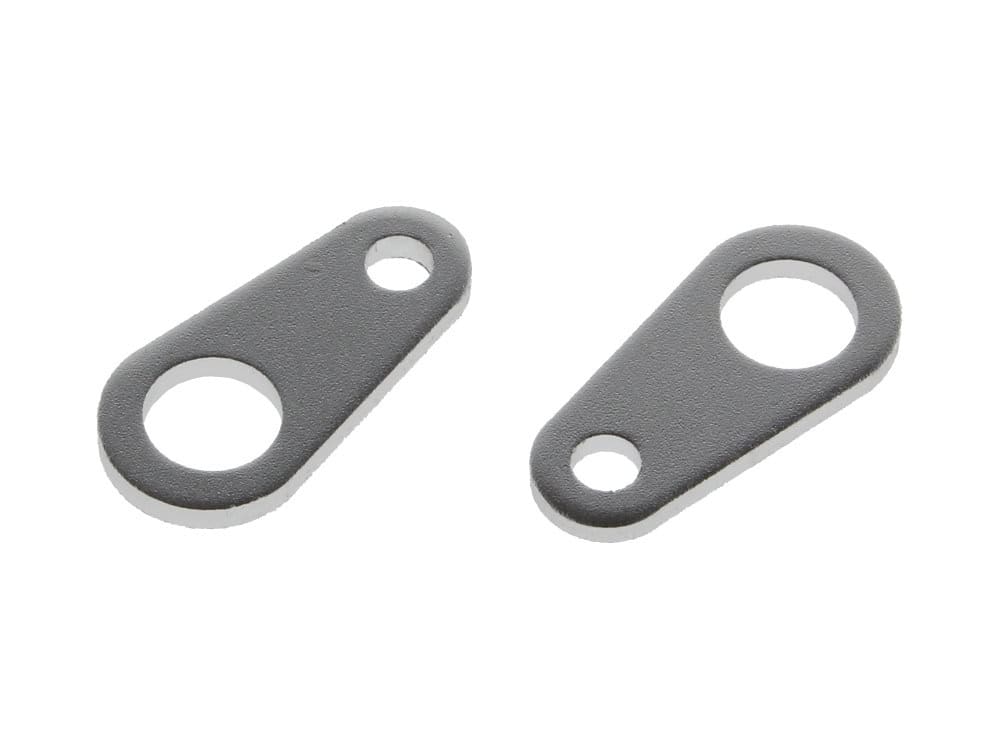 Small grey motorcycle footpeg mounting brackets, durable and lightweight motorcycle accessories.