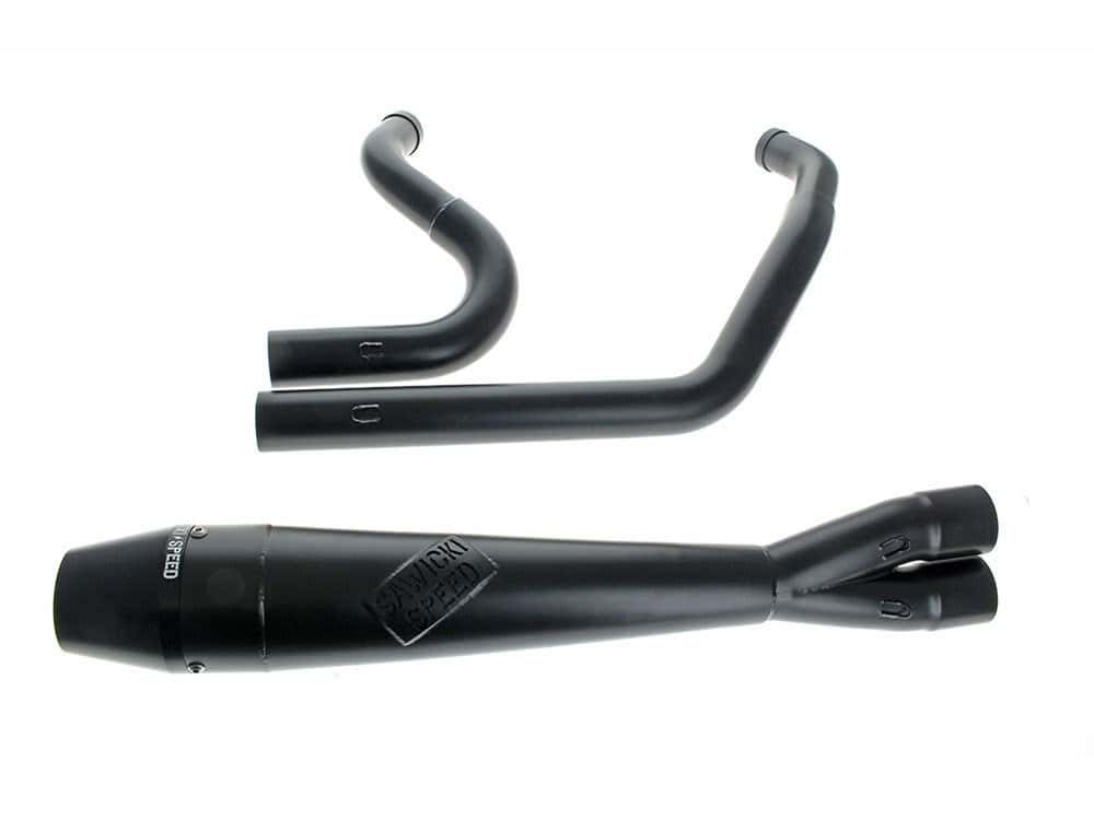 Mid Length 2-into-1 Exhaust with Billet End Cap - Stainless. Fits Softail 1986-2017.