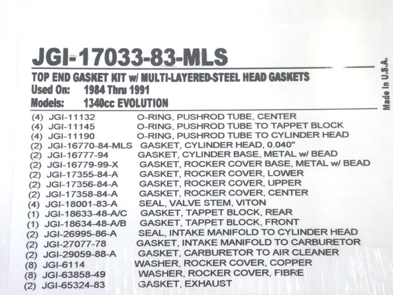 * Includes all Gaskets, O’Rings & Seals to Re-Buld a Top End.