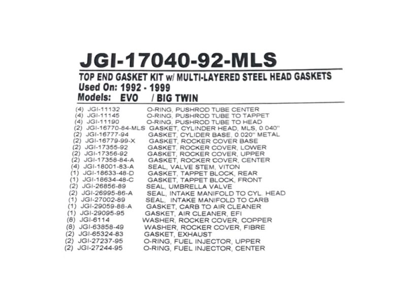 * Includes all Gaskets, Seals & O’Rings Required for a Complete Top End Rebuild.