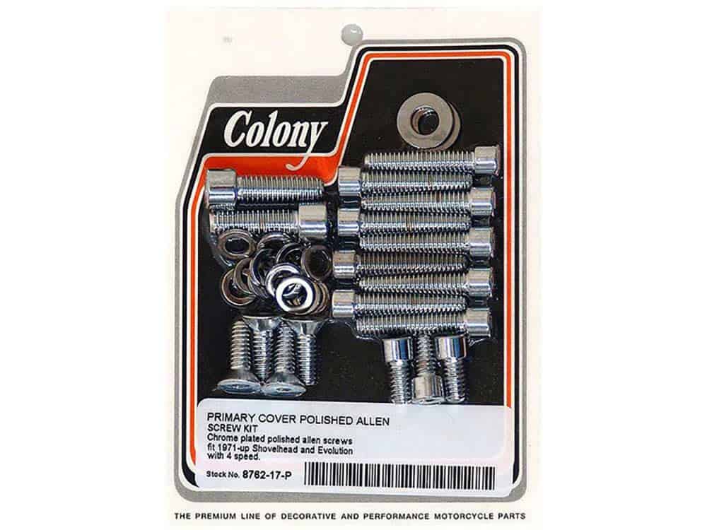 Chrome motorcycle screws and bolt kit for Harley and custom bikes.
