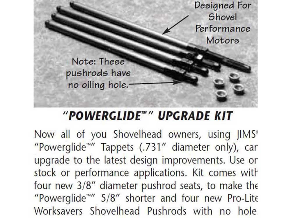 * Fit all Big Twins with Shovel Engines using JIMS Powerglide Tappets #’s JM-2459-1, JM-2460-1 or JM-2461-1.