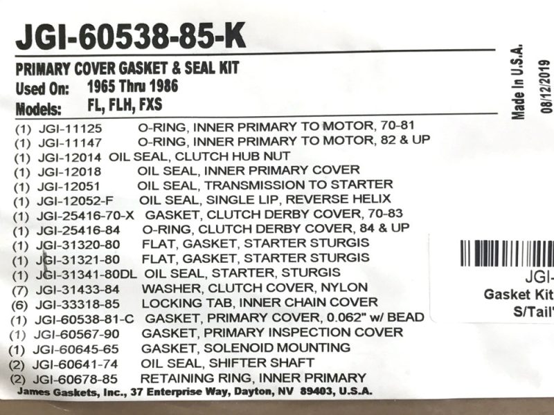 * 0.062″ Paper Primary, Derby & Inspection Cover Gaskets with Bead.