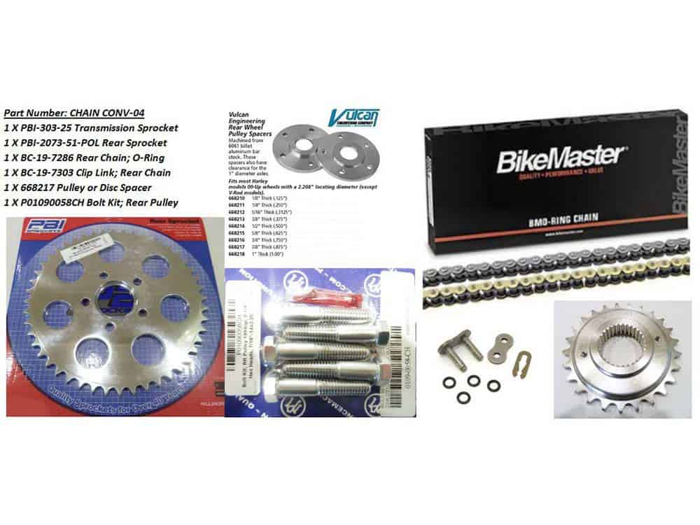 Rear Drive Belt to Chain Conversion. Fits Dyna 2006-2017. Chrome Rear Sprocket. Final Drive Ratio = 2.04:1