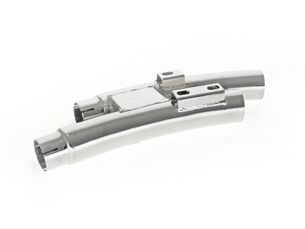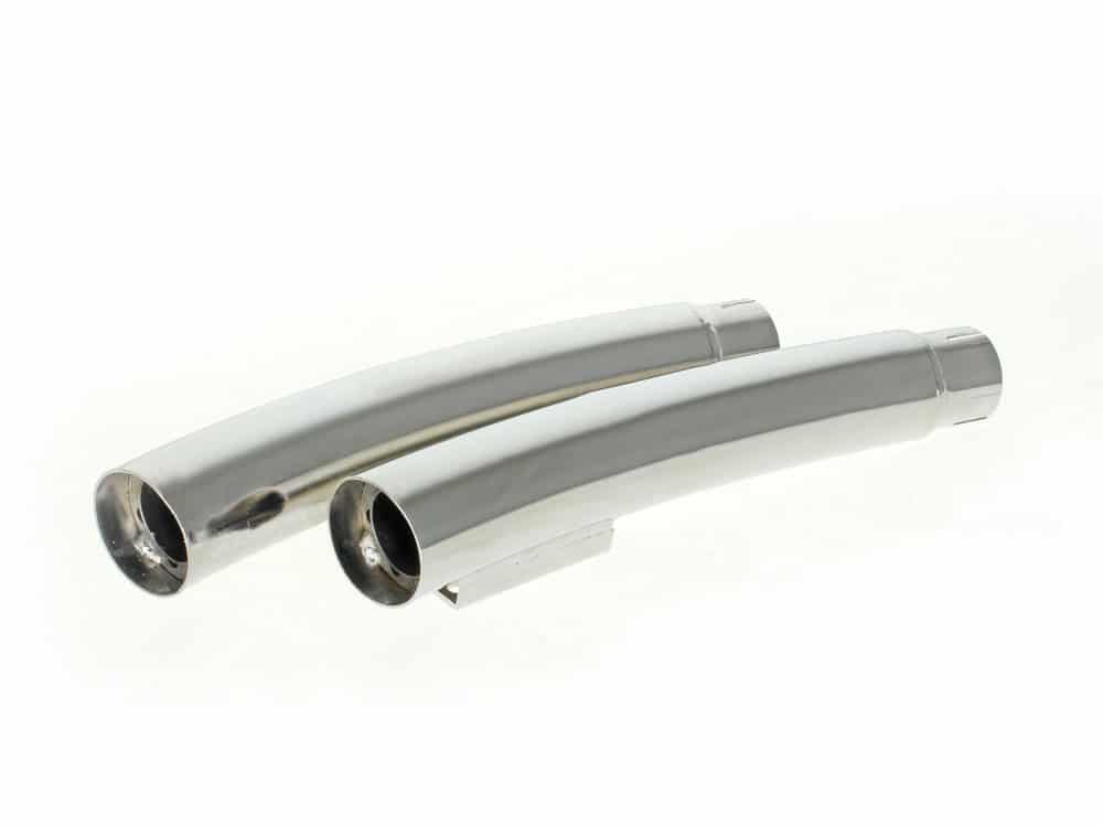 Chrome motorcycle exhaust pipes for Revelry Motorcycles AU, high-performance custom motorcycle parts, robust design, sleek chrome finish.